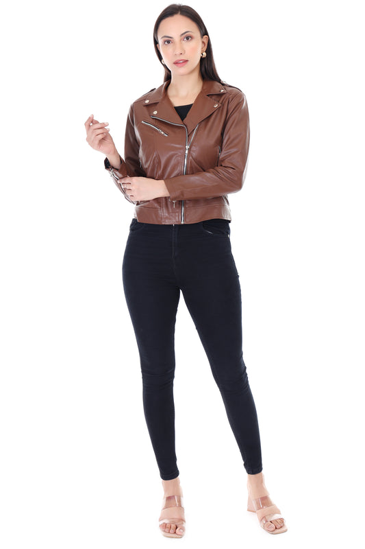 Women's Brown Biker Jacket - Sleek & Stylish