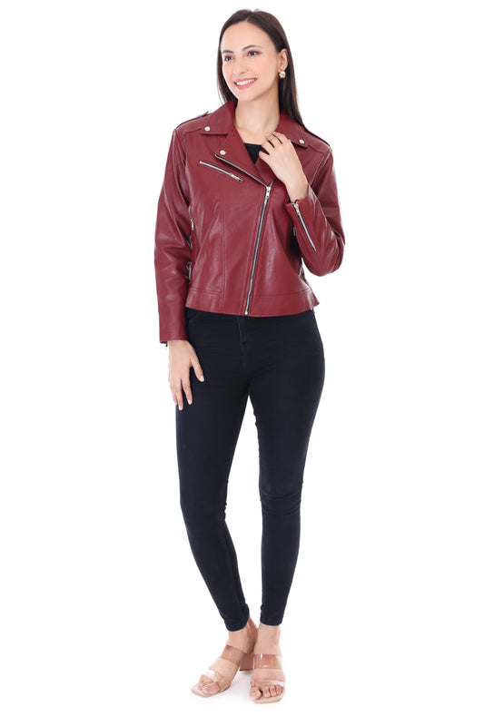 Women's Maroon Biker Jacket - Sleek & Stylish