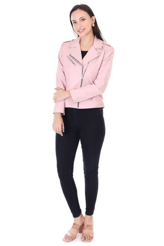 Women's Pink Biker Jacket – Chic and Bold Style